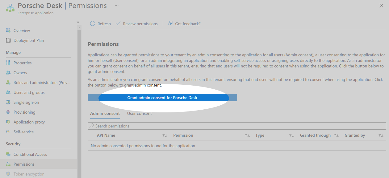 Click on the "Grant admin consent ..." button to start the consent approval process.